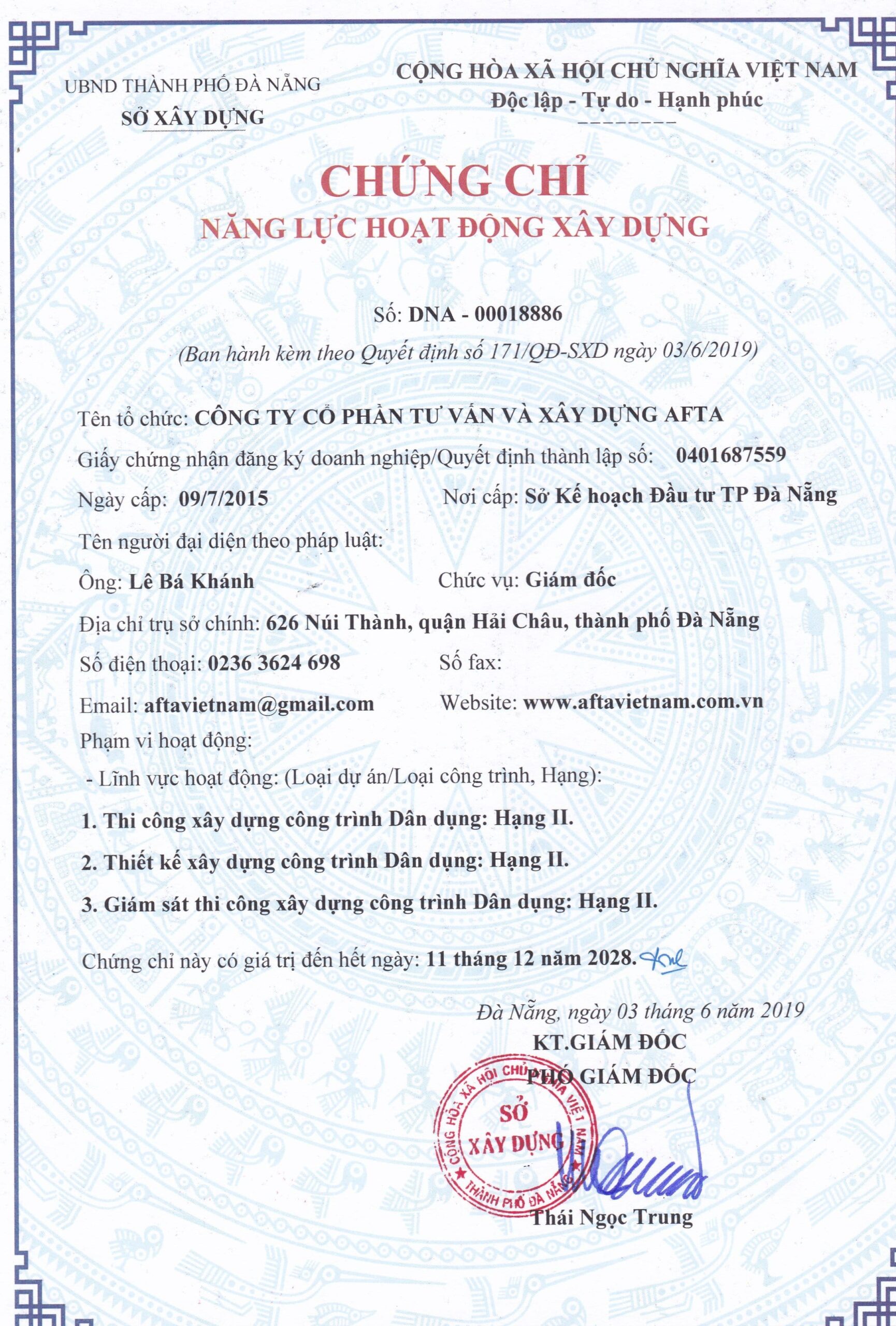 Chứng chỉ năng lực AFTA Được xuất bản vào 10/12/2020 tại 1730 × 2560 trong Công ty xây dựng ở Đà Nẵng “UY TÍN, CHẤT LƯỢNG” – AFTA Chứng chỉ năng lực AFTAChứng chỉ năng lực AFTA← TrướcTiếp theo →