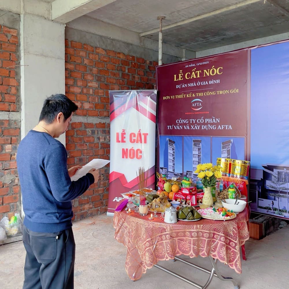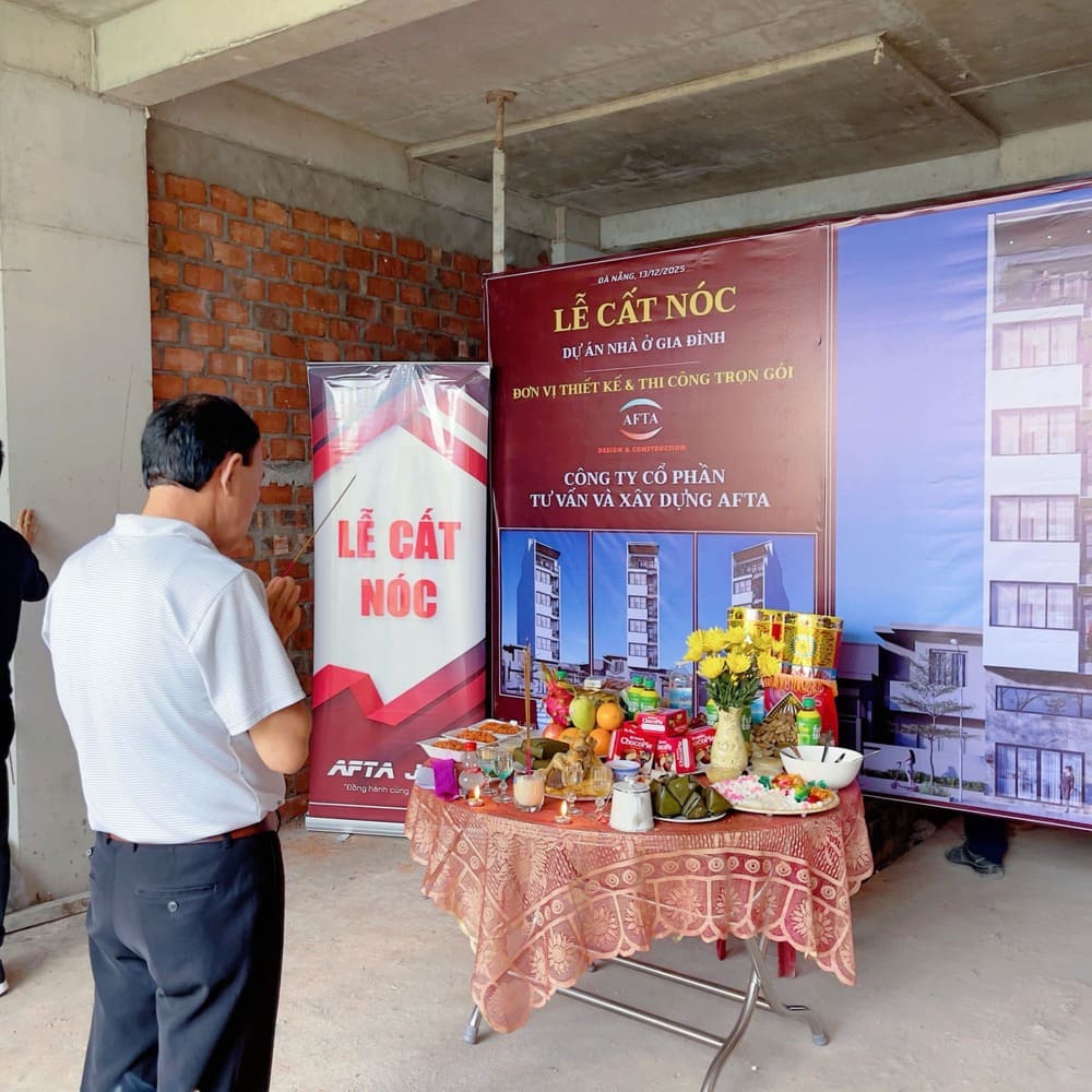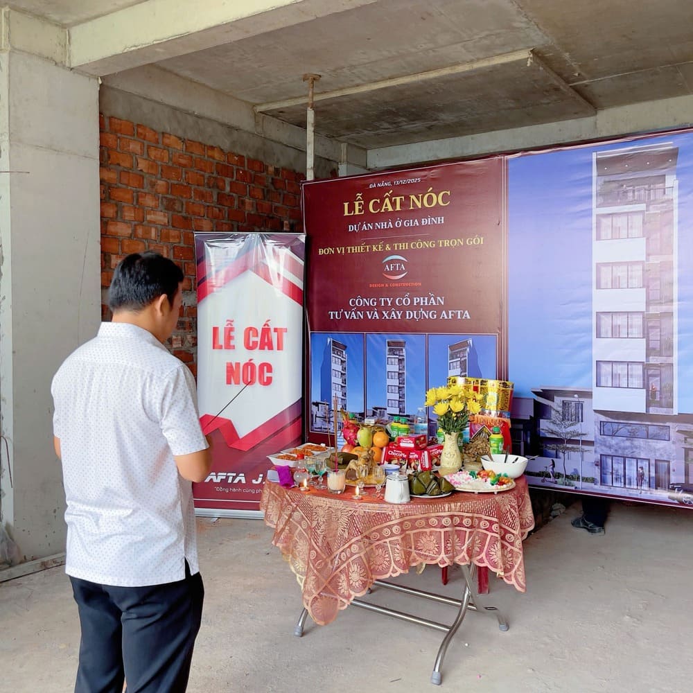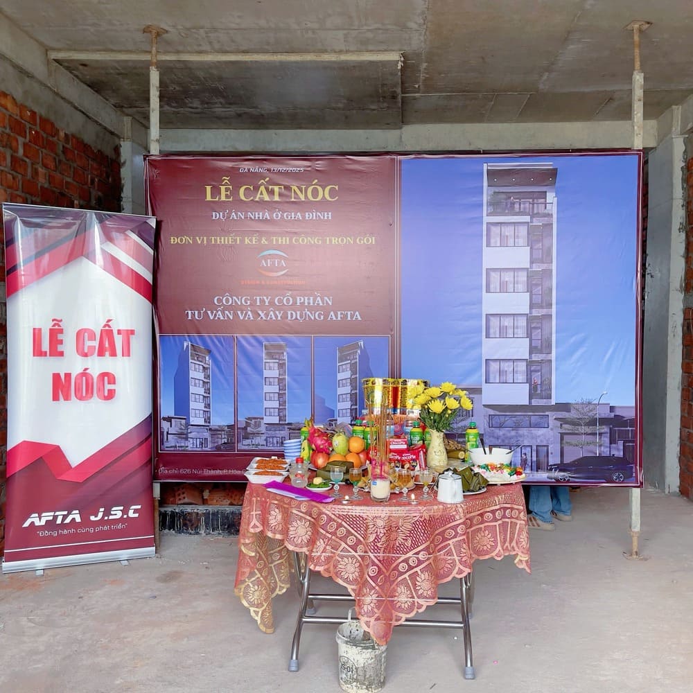 Công trình tại Sơn Trà Đà Nẵng khởi công vào ngày 8/9/2025 đã chính thức cất nóc vào ngày 13/12/2025. Đây là minh chứng rõ ràng cho sự nỗ lực và cố gắng làm việc của công nhân và kỹ thuật công trường, dưới đây là một số hình ảnh của lễ cất nóc căn hộ 6 tầng mọi người cùng xem với công ty AFTA nhé!