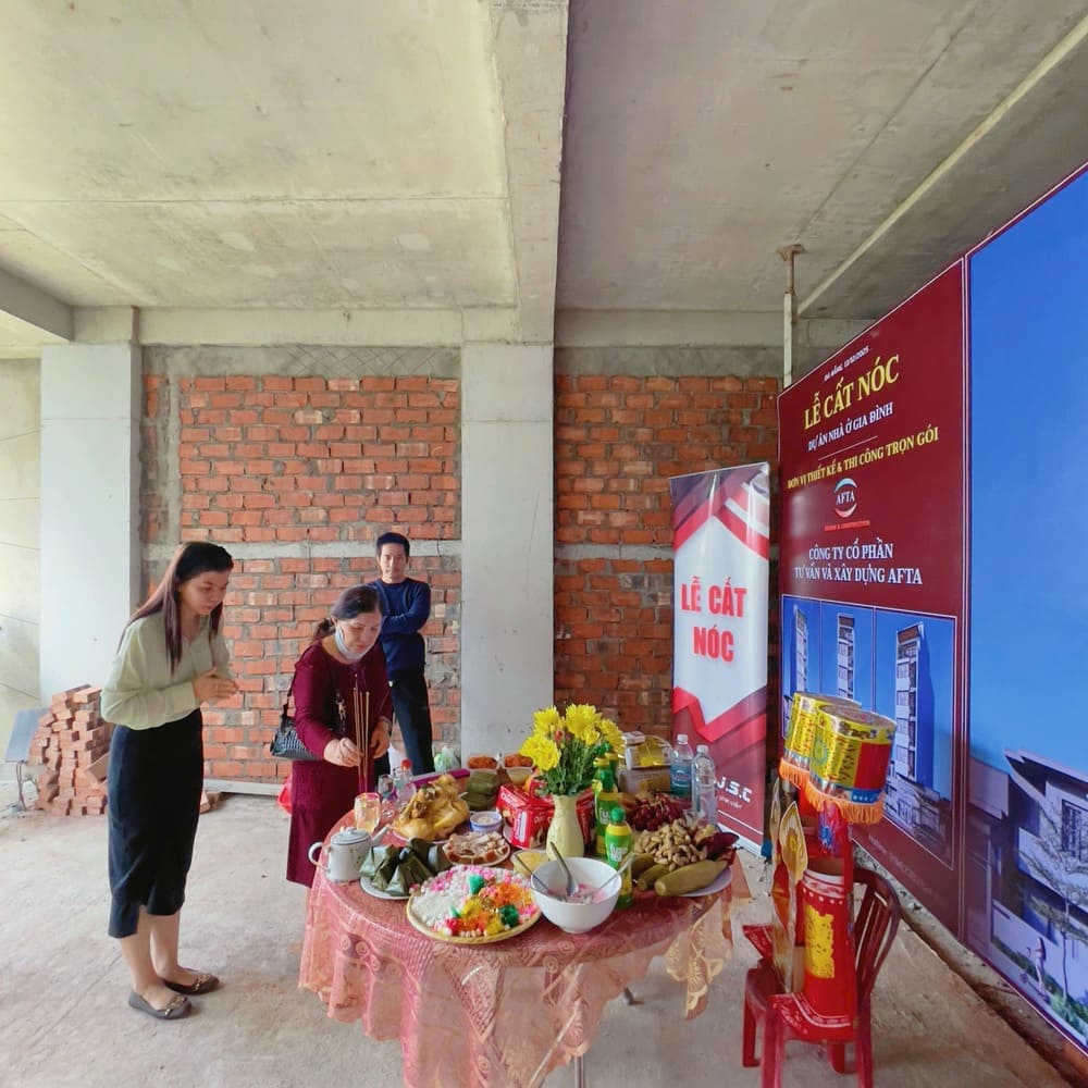 Buổi lễ được long trọng tổ chức và chính thức bắt đầu vào lúc 7 giờ sáng trong không khí trang nghiêm, ấm cúng. Tham dự buổi lễ có sự hiện diện đầy đủ của chủ đầu tư cùng toàn thể cán bộ, nhân viên công ty AFTA, thể hiện sự đồng lòng và tinh thần gắn kết của tập thể. Buổi lễ diễn ra trong khoảng hai tiếng, được chuẩn bị chu đáo từ khâu sắp xếp không gian, lễ vật cho đến trình tự nghi thức. Đây là dịp quan trọng nhằm thông báo với thổ thần, thổ địa nơi công trình tọa lạc rằng quá trình xây dựng đã hoàn thành một cột mốc ý nghĩa – giai đoạn cất nóc.