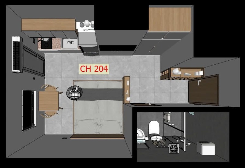 - Tầng 2, 3, 4: Mỗi tầng gồm 5 căn hộ cho thuê với đầy đủ tiện nghi (mỗi phòng đều có phòng ngủ, phòng ăn, khu vực bếp, nhà vệ sinh riêng, có ban công rộng rãi cùng với khu giặt phơi), thang bộ, thang máy và sảnh thang.