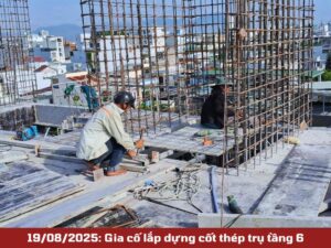 Gia cố lắp dựng cốt thép trụ tầng 6 Được xuất bản vào 09/09/2025 tại 800 × 600 trong Thi Công Căn Hộ Kết Hợp Trung Tâm Dạy Học tại Đà Nẵng ← TrướcTiếp theo →