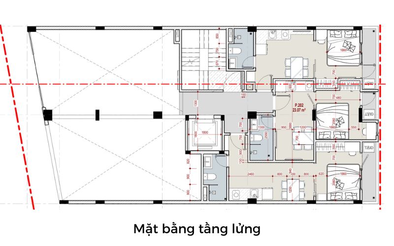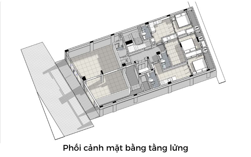 - Tầng lửng: Gồm 3 căn hộ cho thuê đầy đủ tiện nghi có cả ban công và nhà vệ sinh riêng, sảnh thang và hệ thống thang bộ, thang máy.