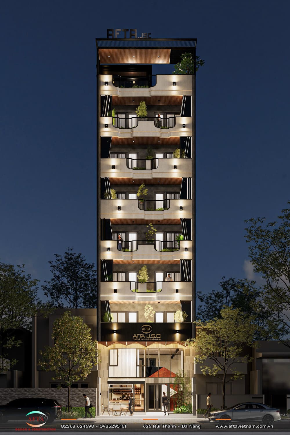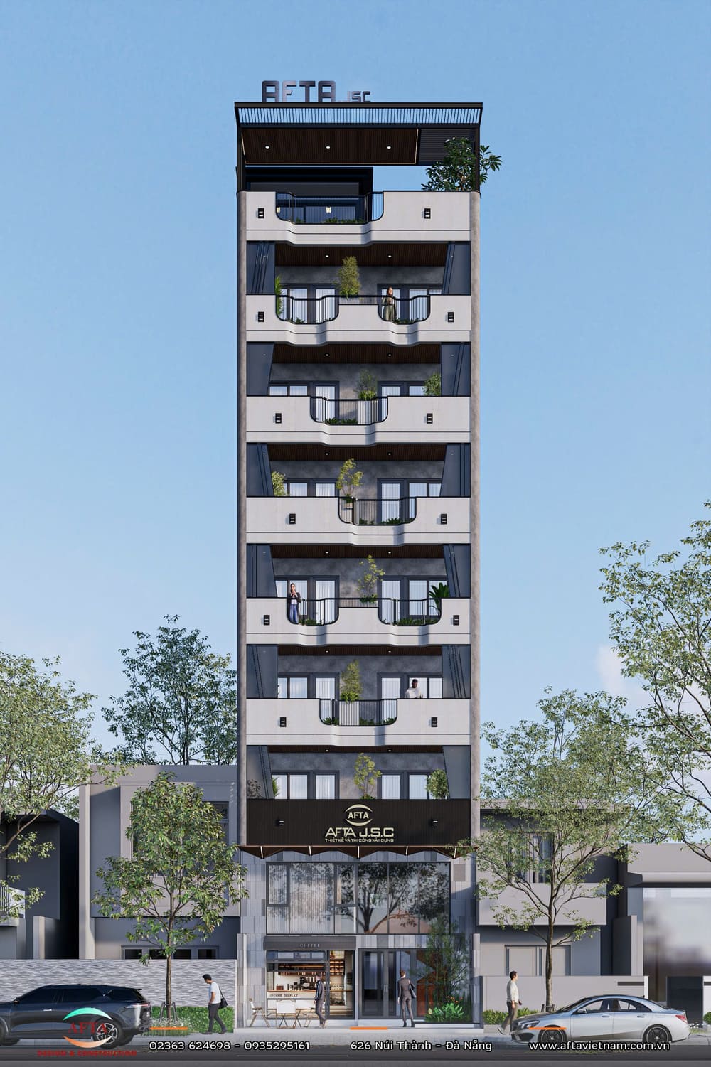 Trên đây là mẫu thiết kế toàn nhà cao tầng với đa dạng công năng, bao gồm kinh doanh, văn phòng, căn hộ cho thuê, nhà ở gia đình. Hy vọng với mẫu thiết kế vừa rồi sẽ giúp bạn có thêm nhiều ý tưởng hay khi xây dựng. Nếu bạn cần tư vấn thiết kế và thi công tòa văn phòng Đà Nẵng có thể liên hệ với AFTA để được tư vấn cụ thể hơn nhé!